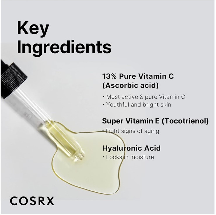 سرم ضدلک و روشن کننده ویتامین سی 13% کوزارکس COSRX حاوی ویتامین سی 13%، رنگ نامنظم پوست، لک ها، لکه های تیره و کک و مک را محو می کند و رنگ کلی صورت شما را بهبود می بخشد.