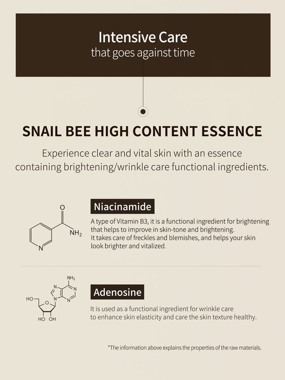 این اسنس دارای نیاسینامید و آدنوزین نیز می باشد که به روشن شدن پوست و افزایش خاصیت ارتجاعی پوست کمک می کند.