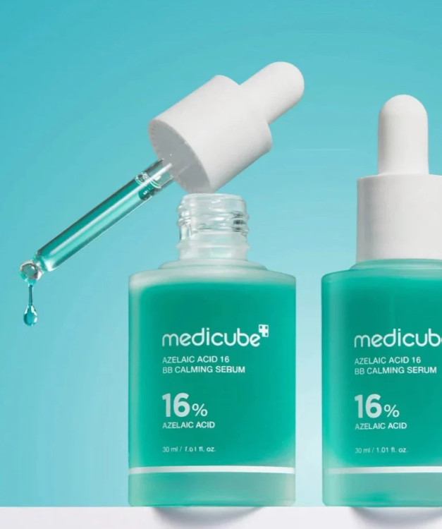 سرم «Azelaic Acid 16 BB Calming Serum» از برند کرهای معتبر مدیکیوب، فرمولی با تمرکز بر آزلاییک آسید ۱۶٪، نیاسینامید و پانتنول طراحی شده تا پوستهای دارای لک، جوش یا قرمزی را تسکین دهد، بافت را بهبود بخشد و رنگ پوست را متعادل کند.