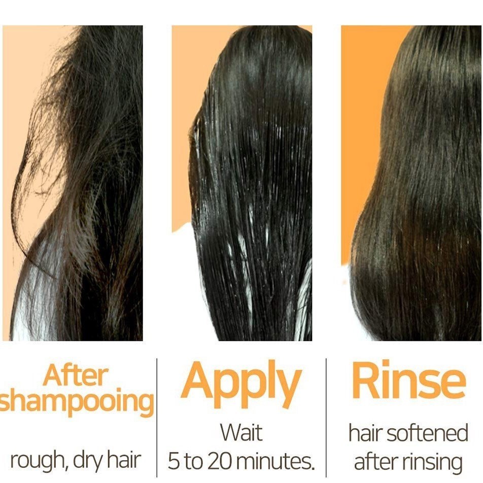بعد از شستوشوی مو، ماسک را روی موهای نیمهمرطوب از ساقه تا نوک پخش کنید. ۵ تا ۱۰ دقیقه بگذارید بماند، سپس آبکشی کنید. برای موهای خیلی آسیبدیده میتوانید مدت بیشتری نگه دارید.