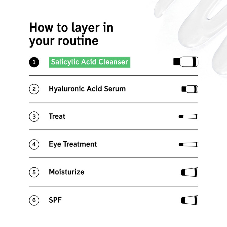 - لایه برداری ملایم: این شوینده حاوی اسید سالیسیلیک است که یک لایه بردار ملایم است و به از بین بردن سلول های مرده پوست کمک می کند.