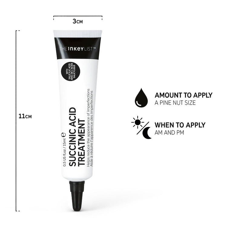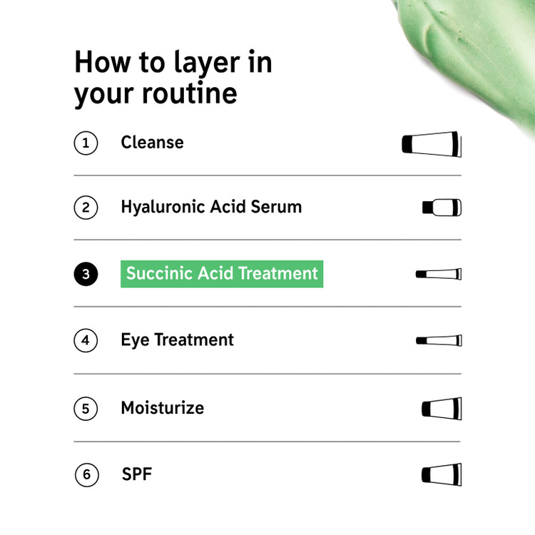 - کاهش لک ها و جوش ها: سوکسینیک اسید به لایه برداری ملایم پوست کمک می کند و سلول های مرده پوست را از بین می برد که می تواند به کاهش انسداد منافذ و جلوگیری از ایجاد جوش کمک کند.