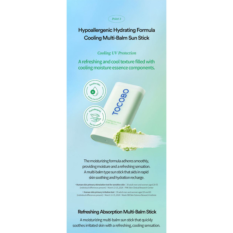 ضد آفتاب استیکی توکوبو مدل سیکا کولینگ محصولی از برند کره ای "توکوبو" (TOCOBO) است که با SPF50+ و +++++PA از پوست شما در برابر اشعه های مضر خورشید محافظت می کند. این ضد آفتاب دارای خاصیت خنک کنندگی نیز می باشد و برای پوست های چرب و مستعد جوش مناسب است.