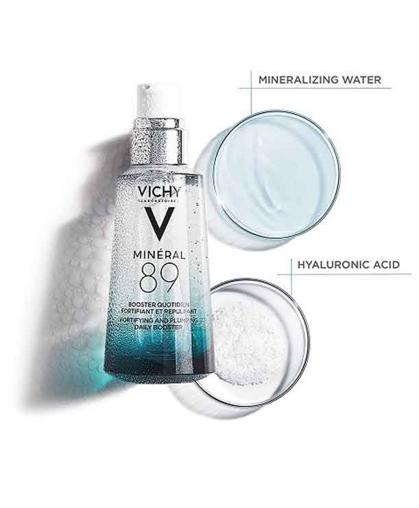 سرم آبرسان و تقویت کننده پوست مینرال 89 ویشی محصول فرانسه یک سرم ویژه برای مراقبت روزانه از پوست است. این سرم با مواد فعالی فرموله شده و حاوی 89% آب آتشفشانی ویشی با 15 ماده معدنی ضروری، اسید هیالورونیک با منشا طبیعی می باشد. از این رو پوست را عمیقا آبرسانی و تغذیه کرده و از اولین بار استفاده به تقویت و ترمیم سد محافظ طبیعی پوست شما کمک می کند. سرم آبرسان و تقویت کننده پوست دیلی بوستر ویشی مدل Mineral 89 تنها در 7 روز پوستی حجیم، صاف، مرطوب و قوی تر به شما می بخشد.